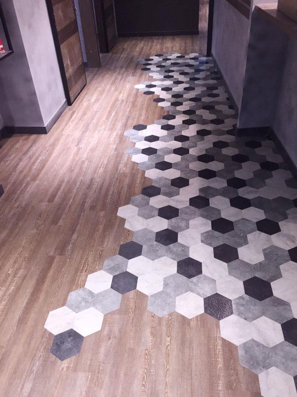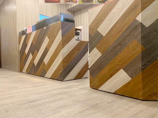 現在的地板完成面幾乎都是瓷磚或是拋光石英磚,給人冰冷的感覺,夏天或許感覺良好,但是一到冬天寒冷的感覺會倍數成長,這時就可以考慮鋪上PVC耐磨塑膠地磚或是密集板卡扣式超耐磨地磚,可以明顯改善冰冷的感覺,靠山近水或是潮濕的環境,甚至可以選擇SPC石塑防水超耐磨地磚,都是很好的選擇。也有非常多商業空間採用仿木紋的塑膠地磚,以成本較低的方式,營造有質感的舒適環境。