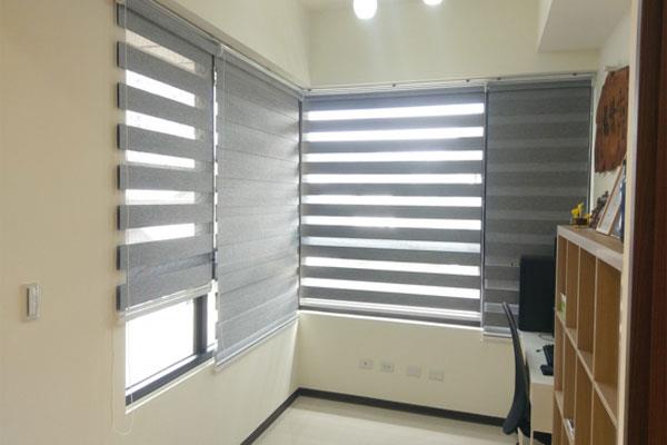 【案例介紹】新店豪宅/誰說豪宅一定要華麗,屋主窗簾選擇素面同色調的搭配。書房使用雅致而且容易清潔的調光簾,視覺上用窗簾來區隔不同空間,隨時讓室內明亮起來,美好的空間,讓人在視覺上以及心情上都是舒服的。